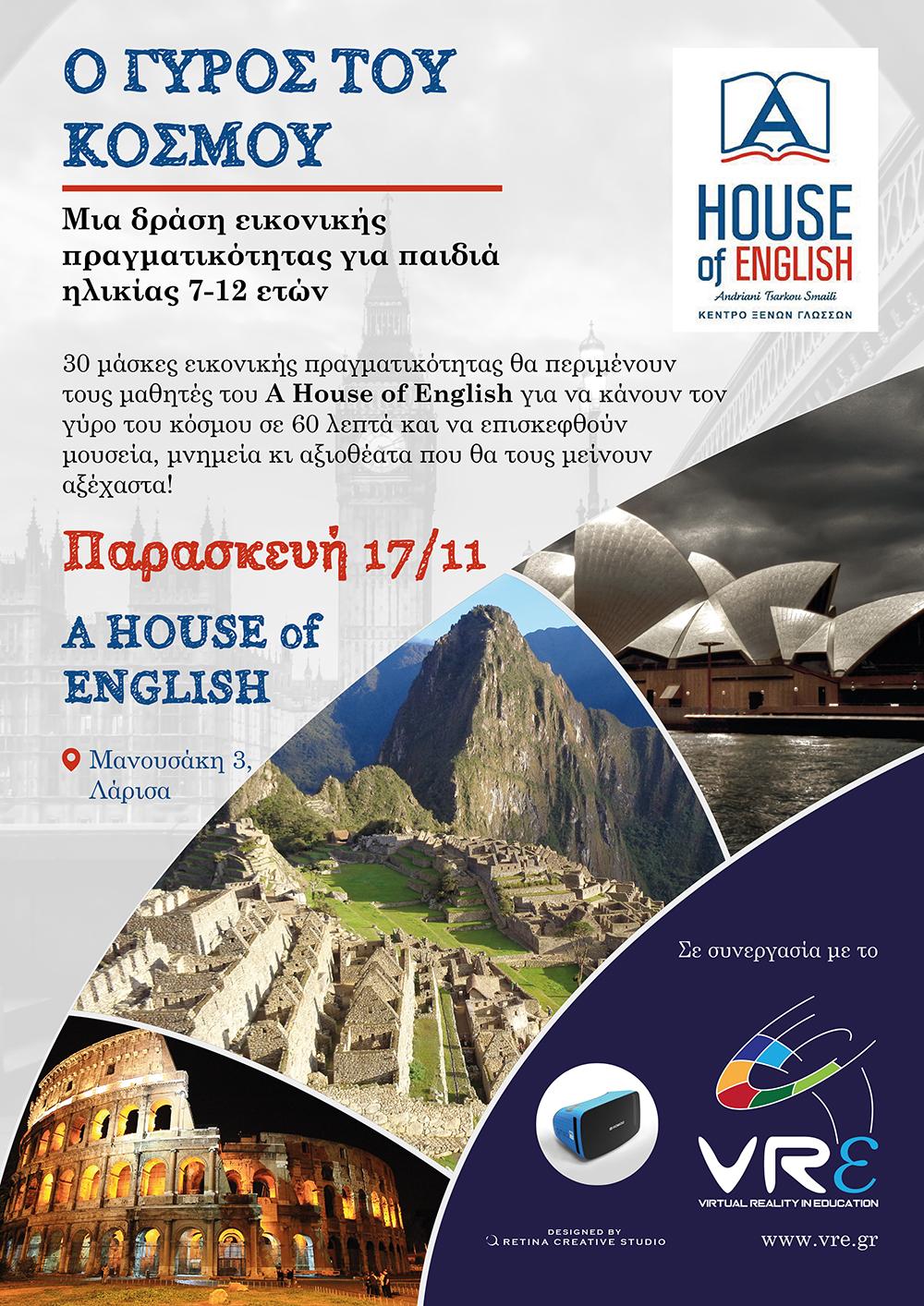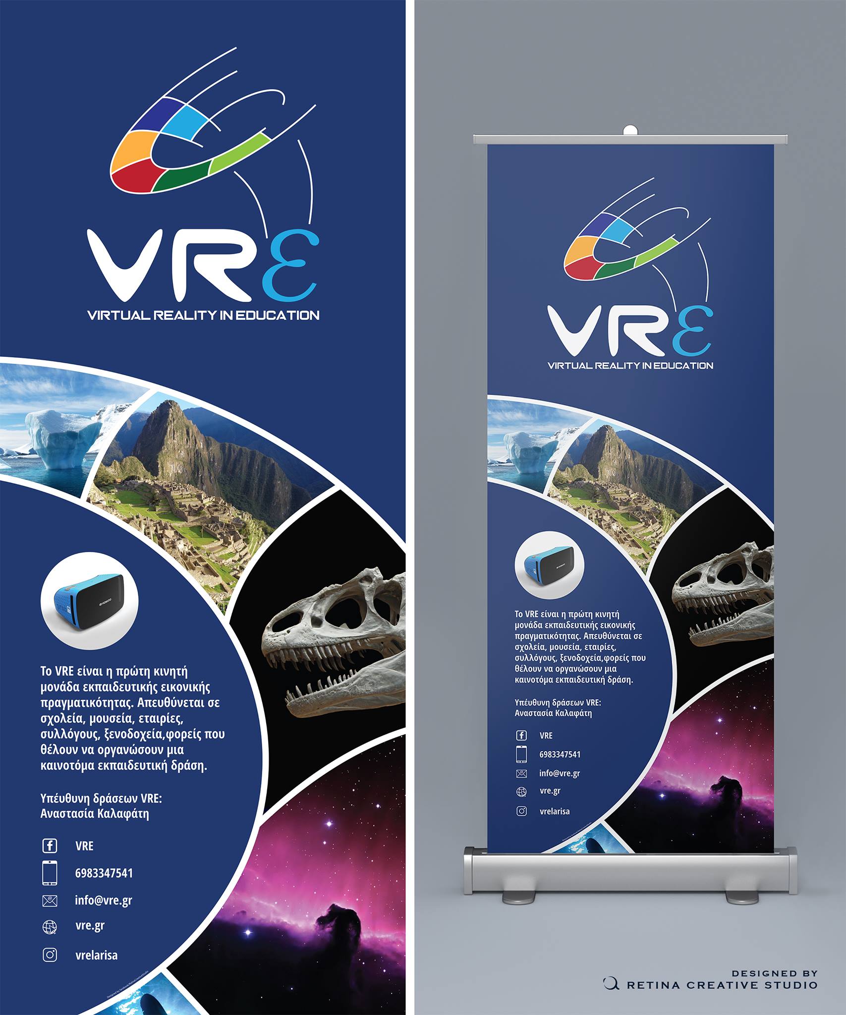 Λογότυπο για το VRE – την πρώτη κινητή μονάδα εκπαιδευτικής εικονικής πραγματικότητας – με σύμβολο τη χωροχρονική σκουληκότρυπα. Το VRE λειτουργώντας ως χωροχρονική παράκαμψη ταξιδεύει τους μαθητές σε εποχές και μέρη απρόσιτα για τους περισσότερους.